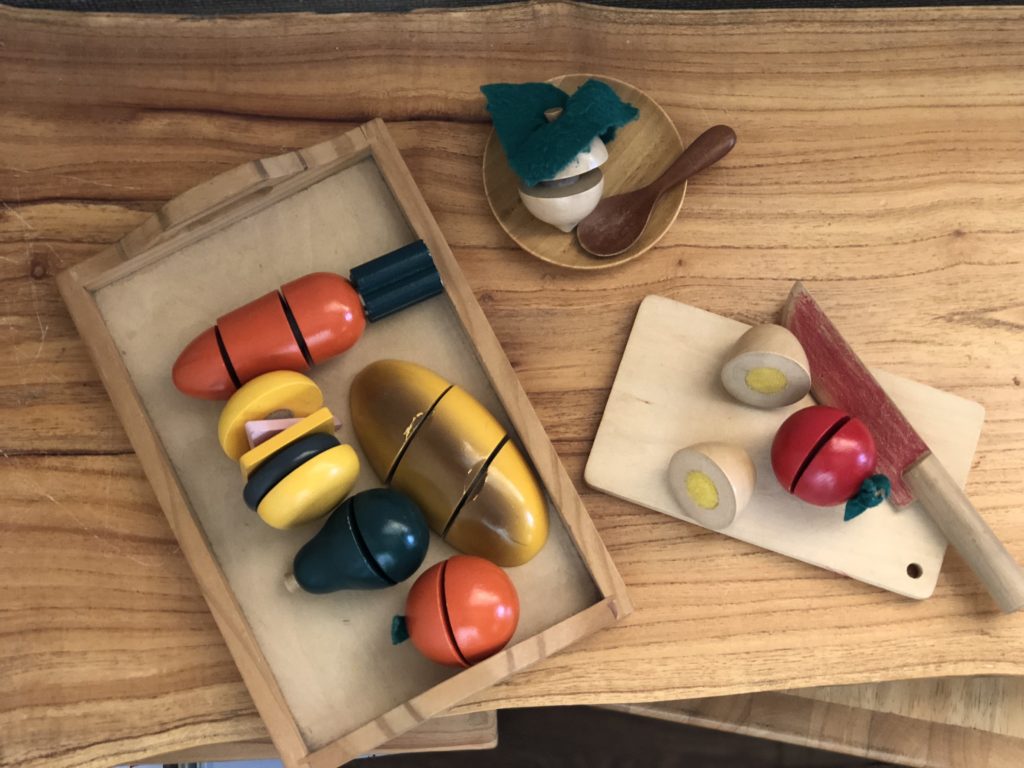 そういう捉え方では、我が家は木のおもちゃは主食、キャラクターものなどのおもちゃはおやつとしていたかもしれません。