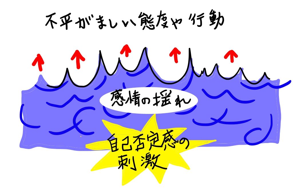 自己否定感が感情を刺激し、自分では抱えきれなくなった鬱屈した感情が、素直でない不平がましい態度を引き起こすのが、【すねる】のメカニズムの一つです。